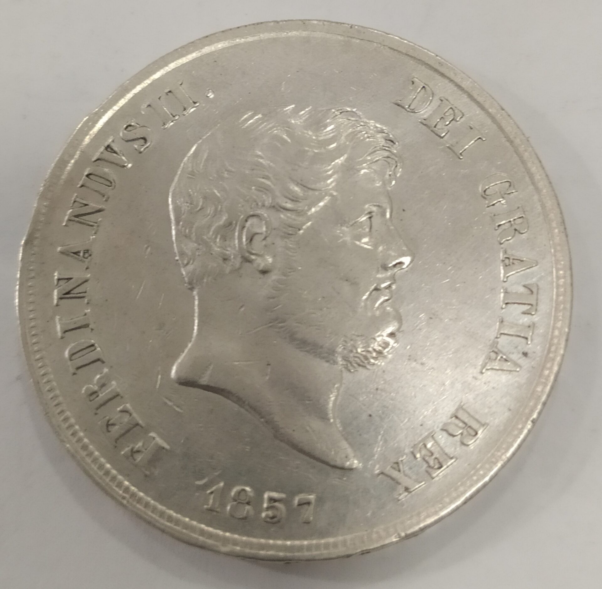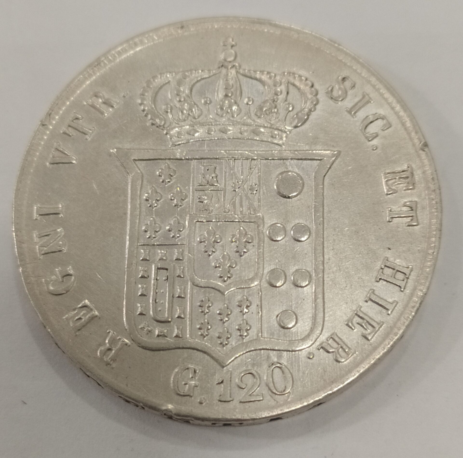 ITALIA NAPOLES MONEDA 120 GRANA AÑO 1857 PLATA FERNANDO I I