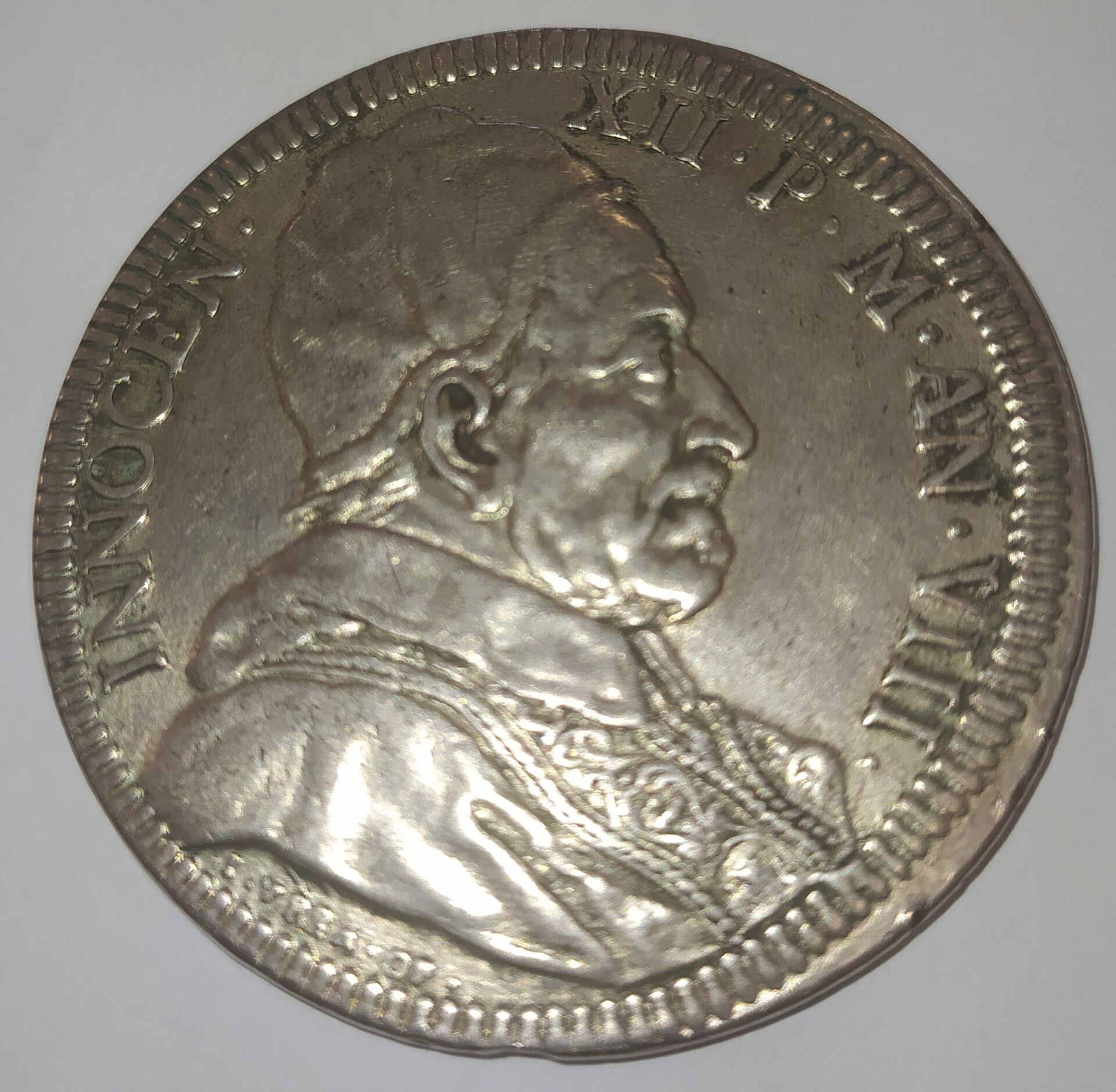 PAPAL STATES INNOCENT XII PIASTRA A. VIII 1698 PLATA (MBC+) RARA